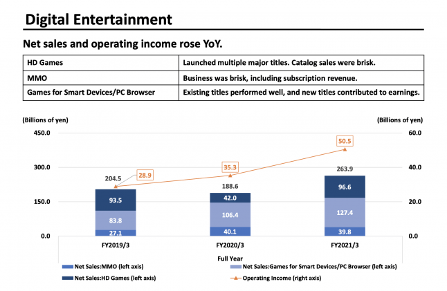 Net sales and operating income in Square Enix’s game-focused Digital Entertainment arm increased year-on-year thanks to growing digital sales and “brisk” sales of catalog titles in the HD Games sub-segment.